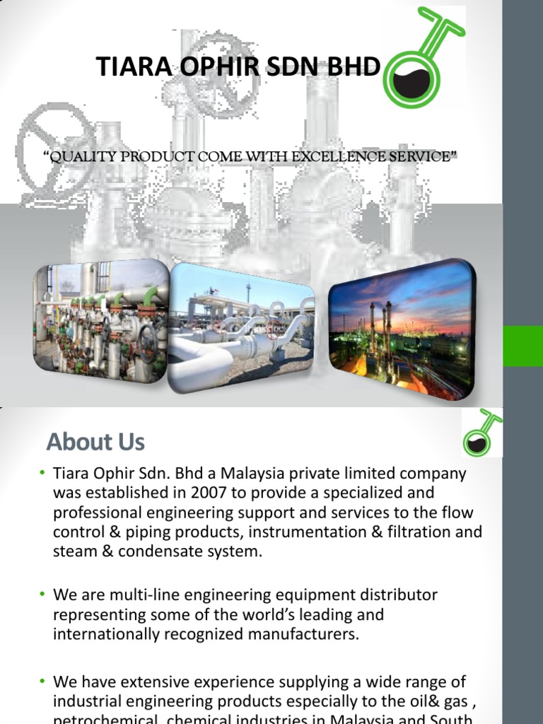 Tiara Ophir Sdn Bhd - 42a (jln 7/7b,seksyen 7) 436500 bangi bandar baru bangi, bangi malásia.. Is a company in malaysia, with a head office in puchong. Our vision is to be a leading one stop supplier of high quality, cost effective products and services of international manufacturer and oem companies from european countries. Tiara ophir has an estimated revenue of <$1m and an estimate of less <10 employees. From the latest financial highlights, tiara ophir sdn. Is a private company incorporated in malaysia since 2007 with strong and vast experience.